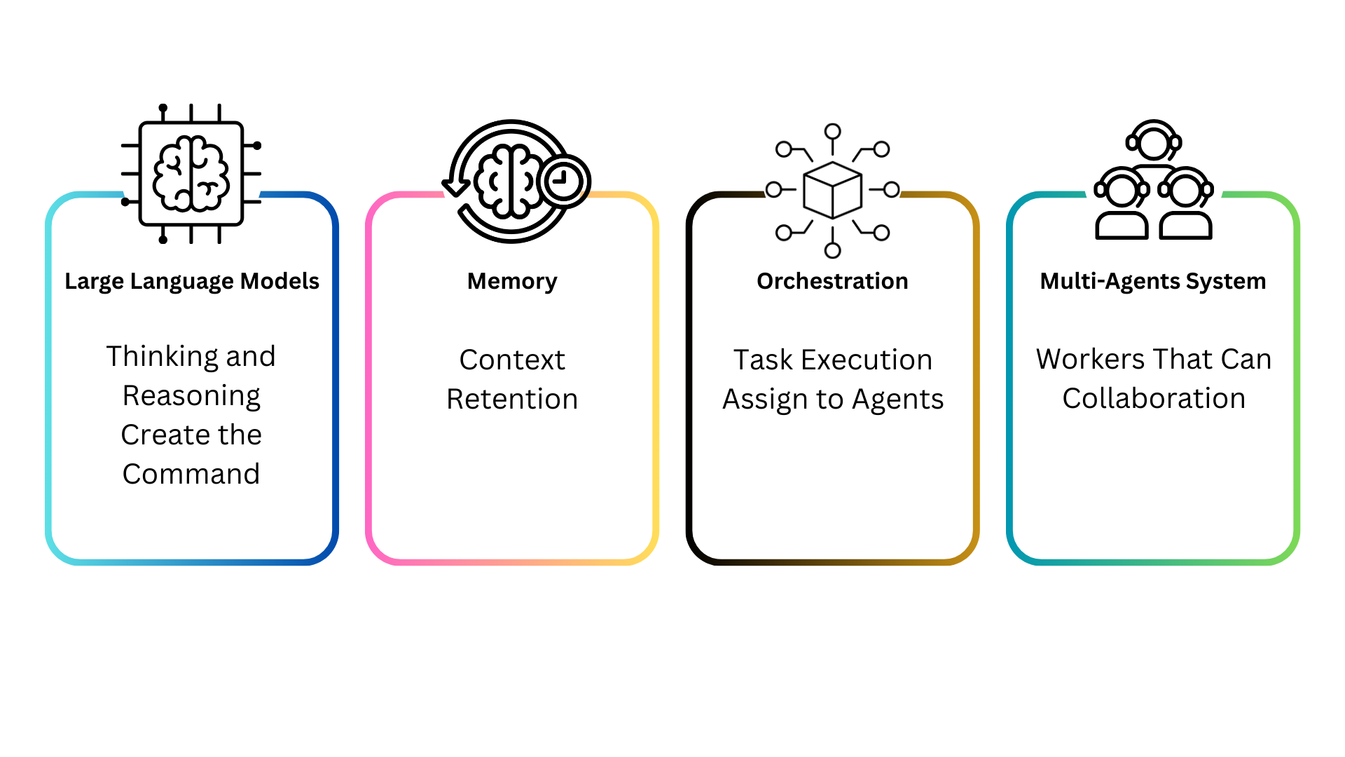 3. Orchestration คือตัวกลางที่จะควบคุมและสั่งการ Agent ต่าง ๆ ว่าแต่ละตัวต้องทำงานอะไร ใครทำก่อนหลัง ขั้นตอนในการทำงานให้ได้มาซึ่งผลลัพธ์ควรเป็นยังไง ภายใต้คำสั่งที่ได้รับมาจาก LLM