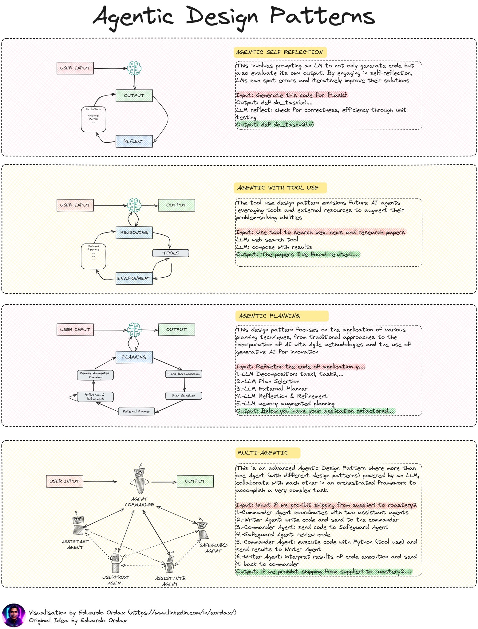 การทำ Agentic AI นั้นทำได้หลายรูปแบบตามปัญหาที่ต้องการแก้ โดยมีตัวอย่างหลัก ๆ ในการออกแบบดังต่อไปนี้