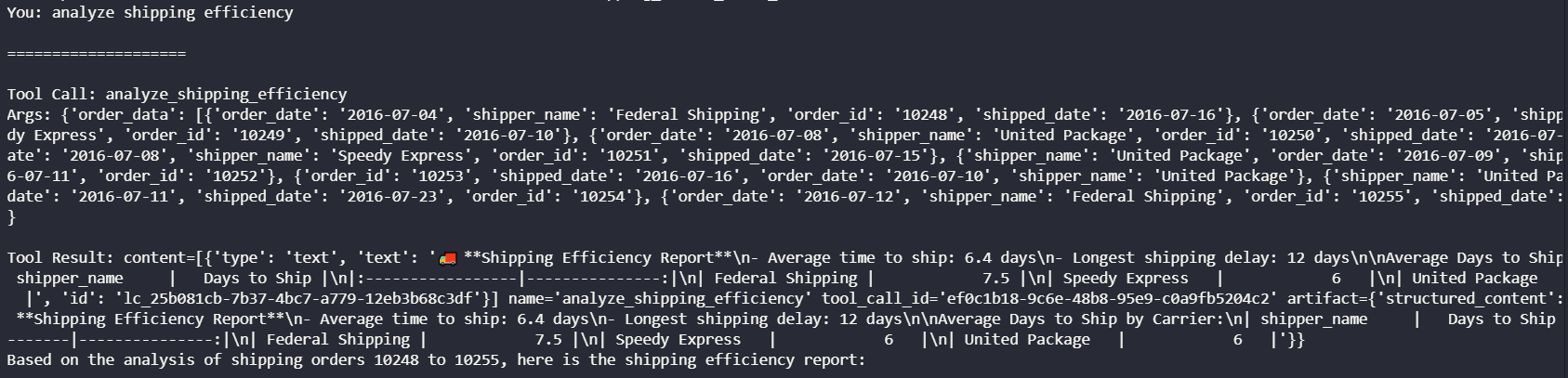 "3. Analyze data using analyze_inventory_health, analyze_shipping_efficiency, analyze_sales_performance tools upon related user query "