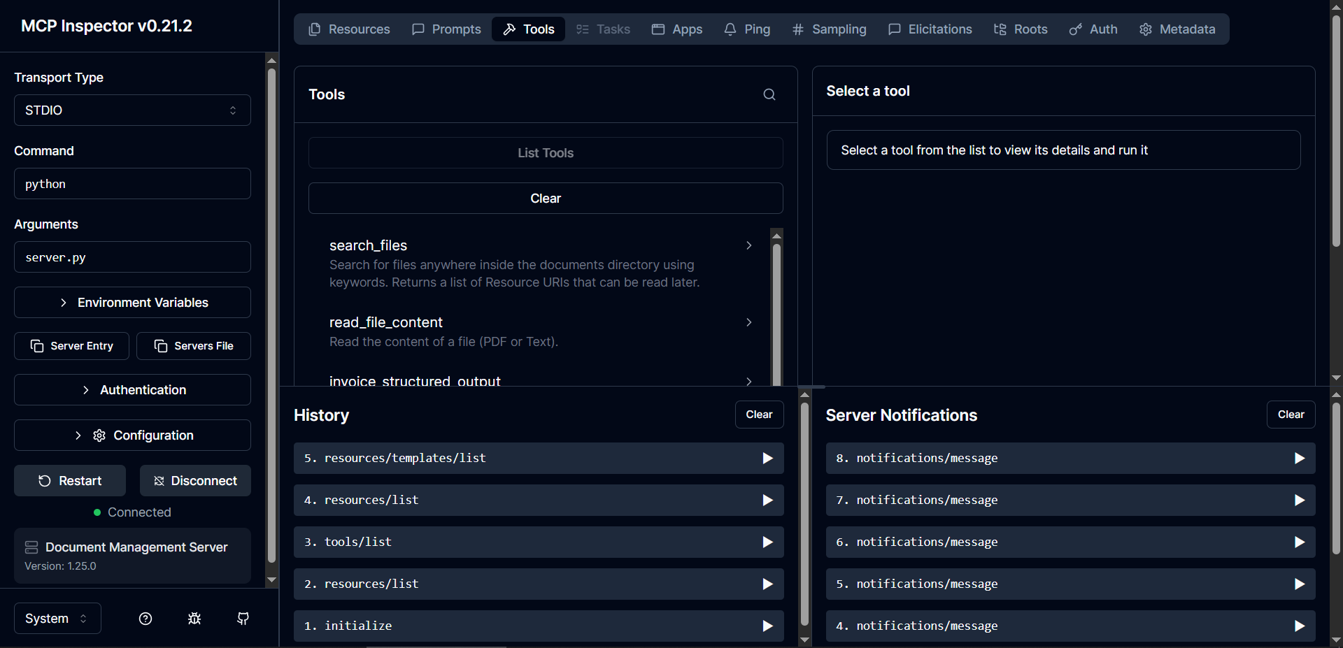เราสามารถที่จะดู Tools, Prompts, Resources ที่มีได้รวมถึง Monitoring เรื่องต่าง ๆ ได้