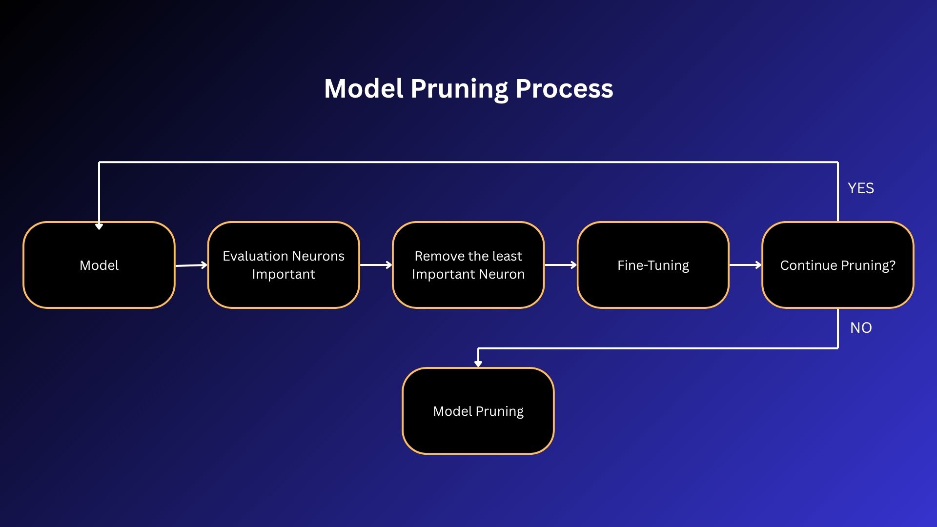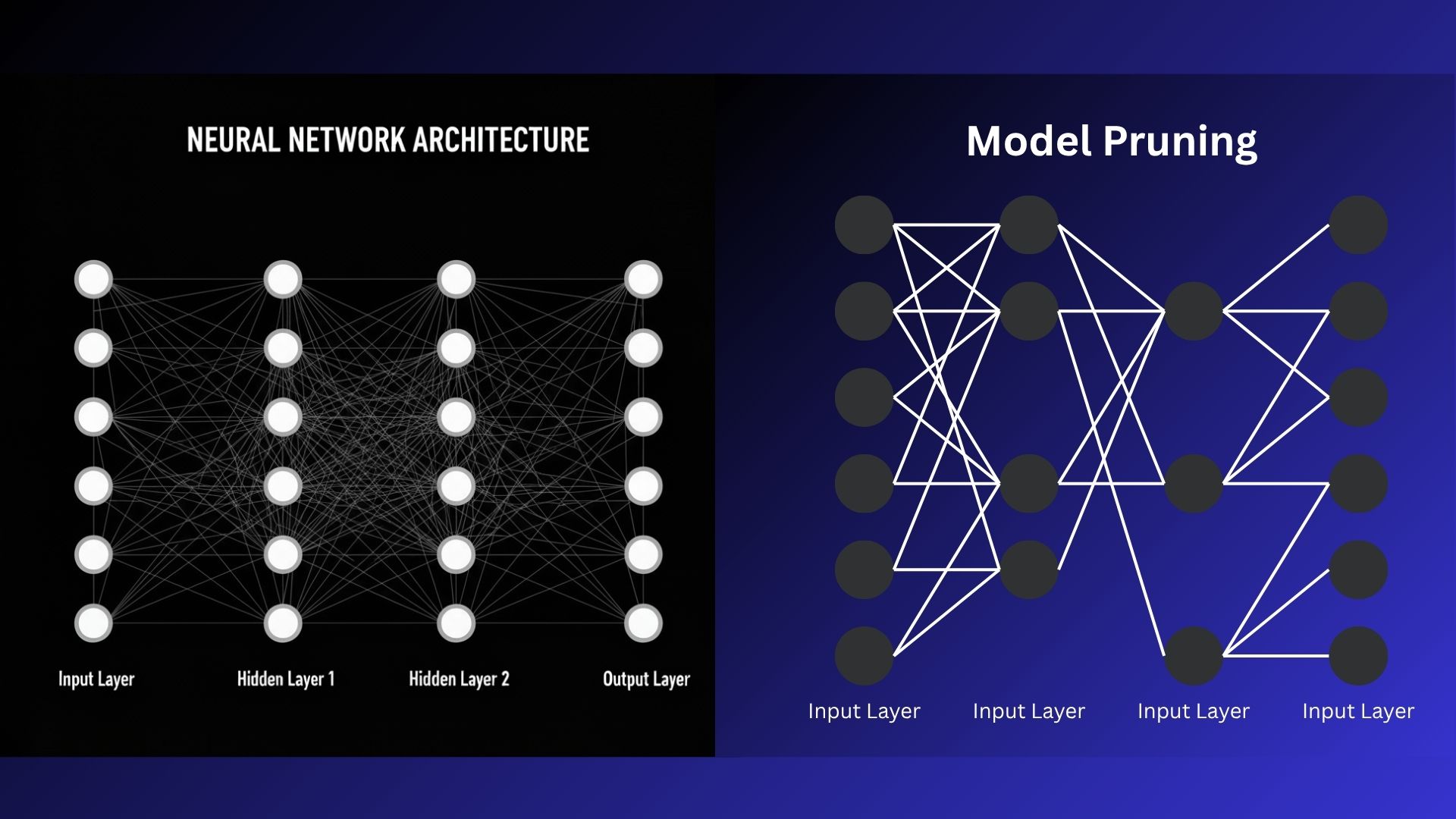 Pruning คือ Model Optimization เทคนิคที่จะเลือกและลดทั้งการเชื่อมต่อระหว่างนิวรอนและลบตัวนิวรอนที่ทำหน้าที่ซ้ำ ๆ กันออกไปโครงข่ายของโมเดลโดยที่ไม่กระทบอะไรกับประสิทธิภาพการทำงานมากเกินไป เทคนิคนี้มีพื้นฐานมาจากการสังเกตว่าแต่ละเซลล์นิวรอนไม่ให้ทำงานเท่ากันทั้งหมดในการคิดให้คำตอบของโมเดล ดังนั้นการระบุนิวรอนที่มีความสำคัญน้อย ๆ และลบออกไปนั้นจะช่วยลดขนาดและความซับซ้อนของโมเดลได้เป็นอย่างมากโดยที่ไม่กระทบต่อการทำงานของโมเดลในเชิงลบ